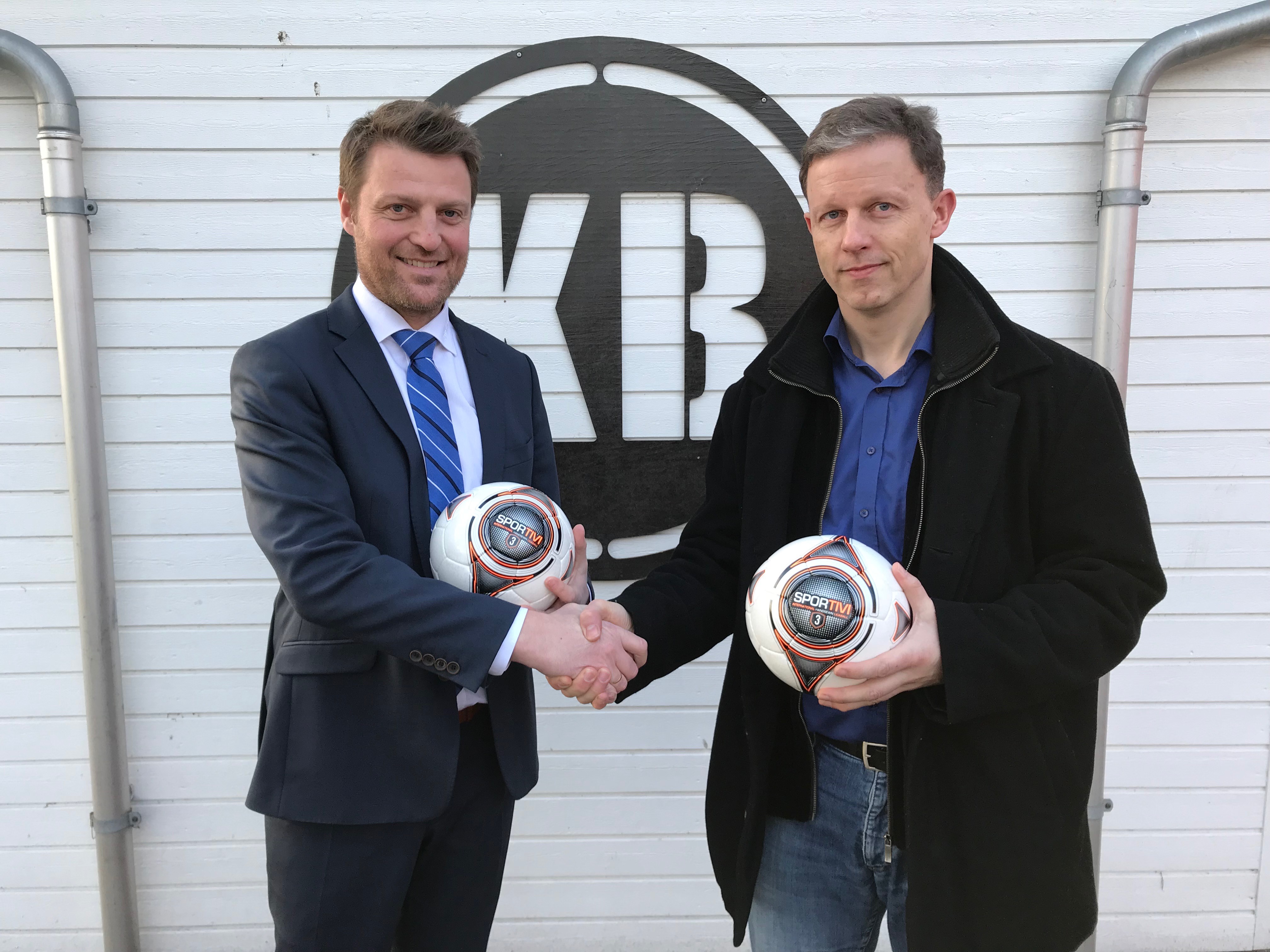 Kolding Boldklub er blevet betænkt med 100 nye fodbolde af Sydbank Fonden. Lars Jensen fra den velgørende fond afleverede under sit besøg på Mosevej boldene til bestyrelsesmedlem Søren Kristensen (th.). Det er såkaldte Sportivi Ligaball Klub-bolde i størrelse 5, og de kommer hele klubben til gode. KB takker fonden for støtten og en rigtig god begyndelse på jubilæumsåret, hvor vi satser på scoringer i millionvis.