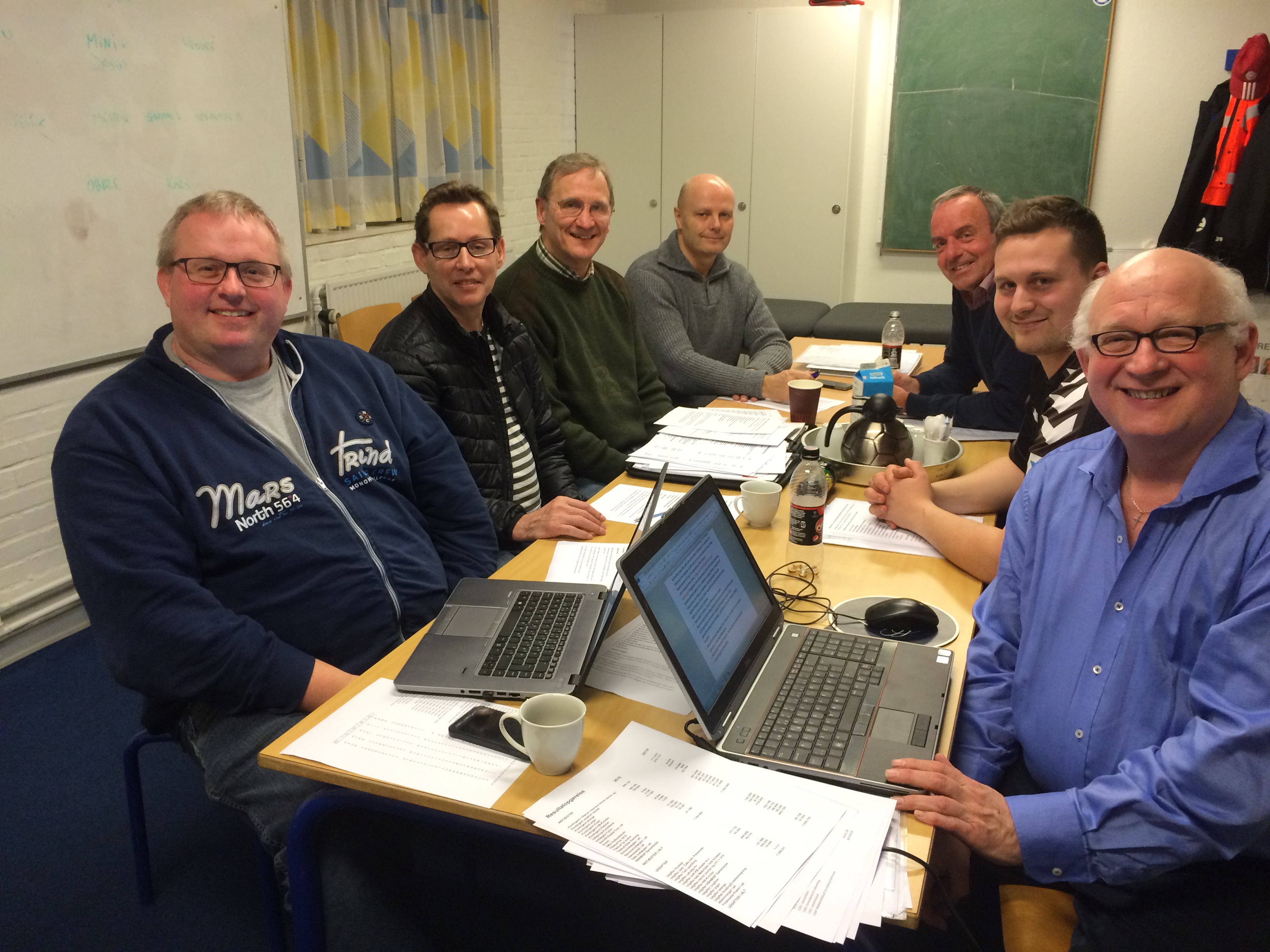 Som det fremgår af billedet er det blevet sjovere at deltage i bestyrelsesmøderne i Kolding Boldklub. Sjovere, fordi klubben er i fremgang på livsvigtige områder. Vi har haft medlemsfremgang, så vi i øjeblikket har omkring 750 medlemmer, og økonomien er i kraftig bedring, så der trods ekstraordinære advokatudgifter og en træls tøjsag regnes med omkring 100.000 kroner i driftsoverskud i 2015. Det endelige regnskab forelægges på årets generalforsamling, som er fastsat til den 5. april.