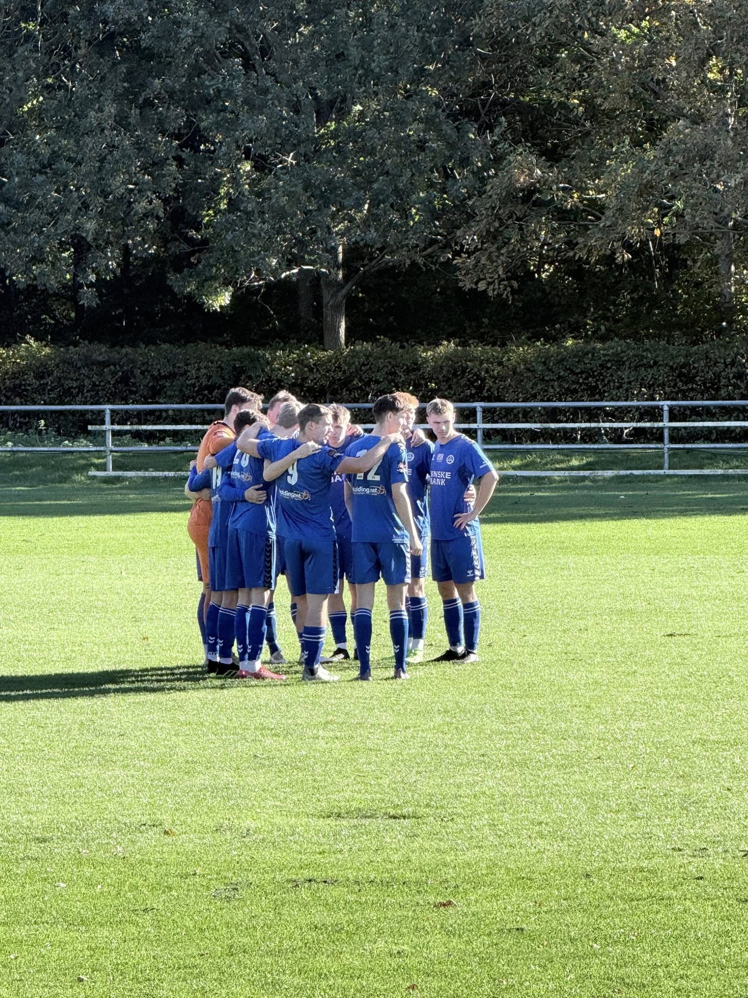 Kolding Boldklub til samling inden kick-off. Fuld fokus på dagens opgave. Foto: Tommy Meyer